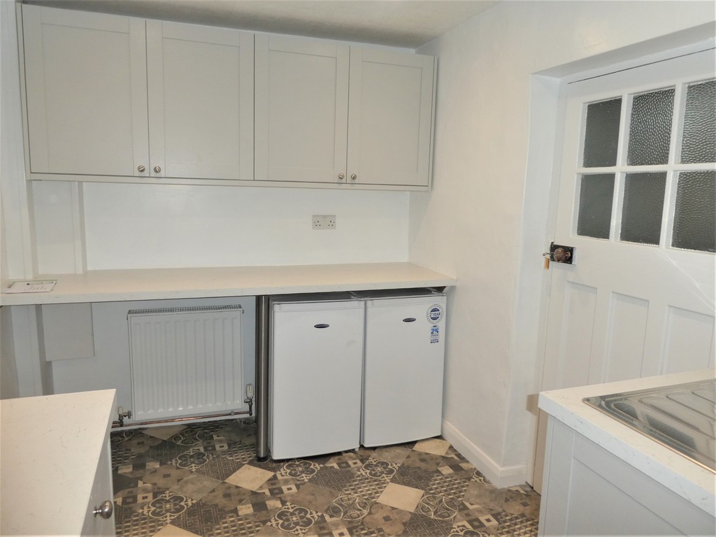 DINING KITCHEN 12' 7" x 7' 2" (3.84m x 2.18m) recently fitted wall and floor mounted units with worktops over, integrated oven and hob, washing machine, fridge and freezer, breakfast bar, window and door to rear.