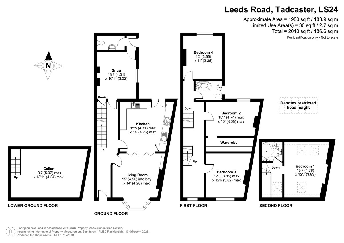 CEALLAR 19' 7" x 13' 11" (5.97m x 4.24m) Full height cellar with shelving.