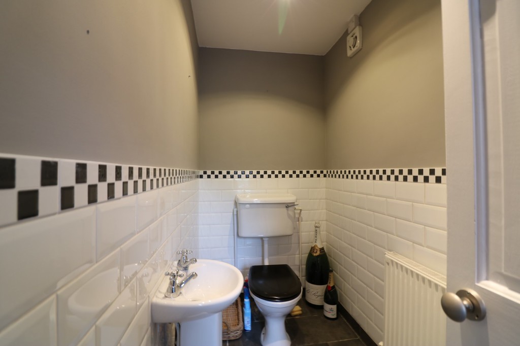GROUND FLOOR CLOAKROOM with toilet and wash hand basin. Gas central heating boiler.