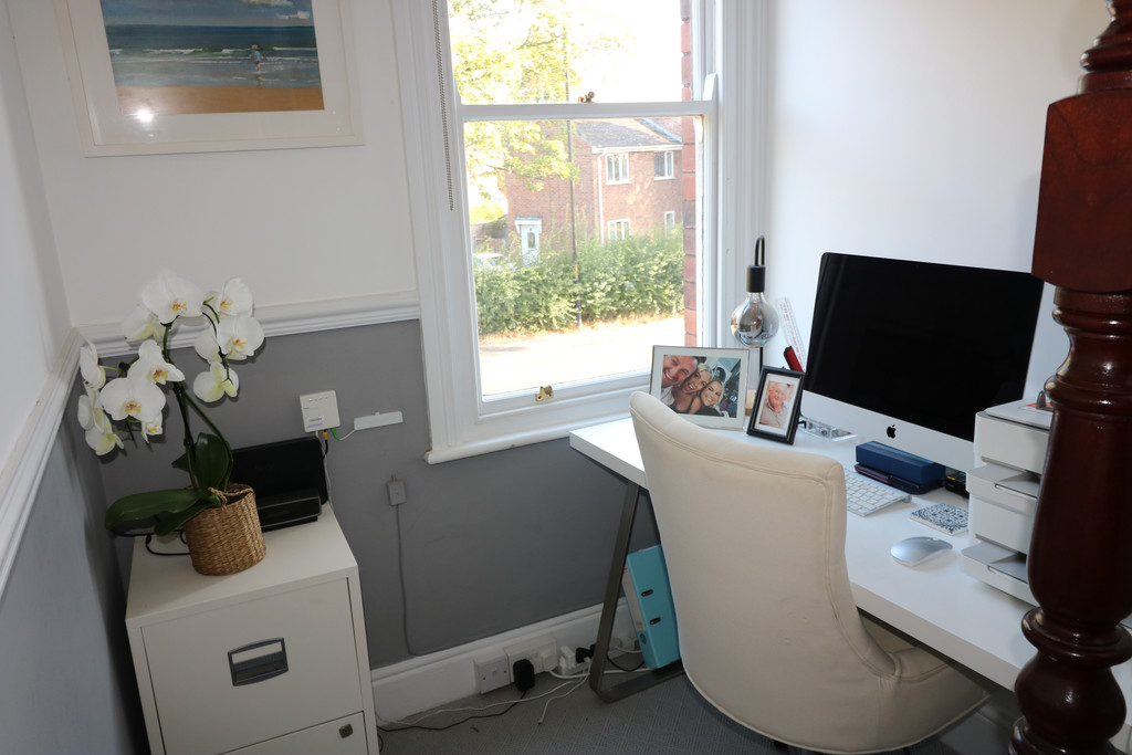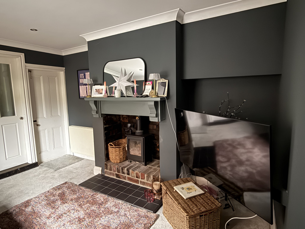 SNUG 13' 3" x 10' 11" (4.04m x 3.33m) with window to side, electric wood burning effect stove in original brick surround, radiator, tv point. Door to cellar.