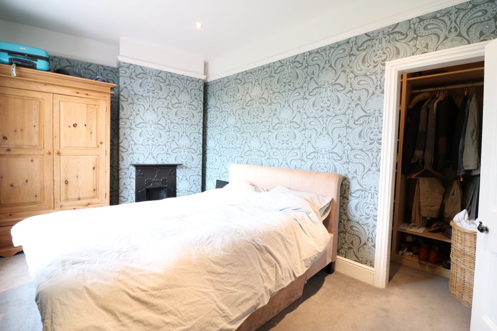 BEDROOM 2 15' 7" x 10' 0" (4.75m x 3.05m) with sash window overlooking garden, Victorian cast iron fireplace, walk in fitted wardrobe with shelving and rails, radiator.