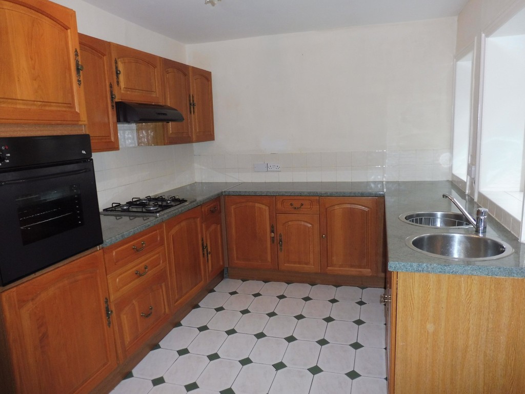 FITTED KITCHEN Having a range of quality Oak units incorporating worktops with cupboards over and under, fitted electric oven, electric hob with extractor over, twin stainless steel sinks, plumbing for washing machine, back door to rear yard, understairs storage cupboard.