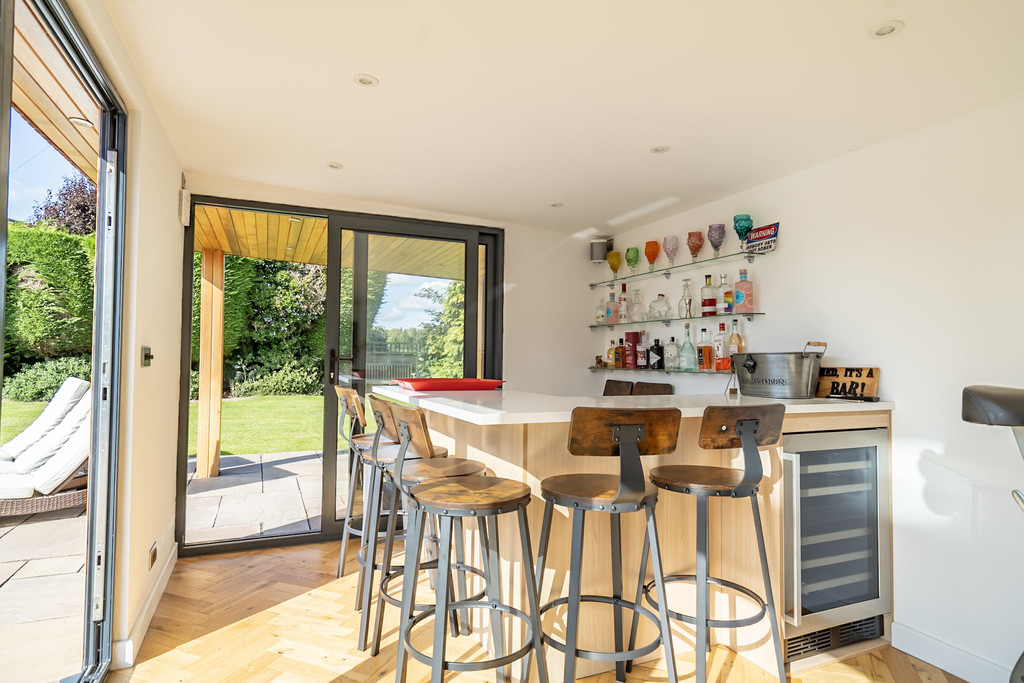 GARDEN ROOM 24' 1" x 9' 3" (7.34m x 2.82m) with bifold doorsto the front and sliding door leading to patio area.
