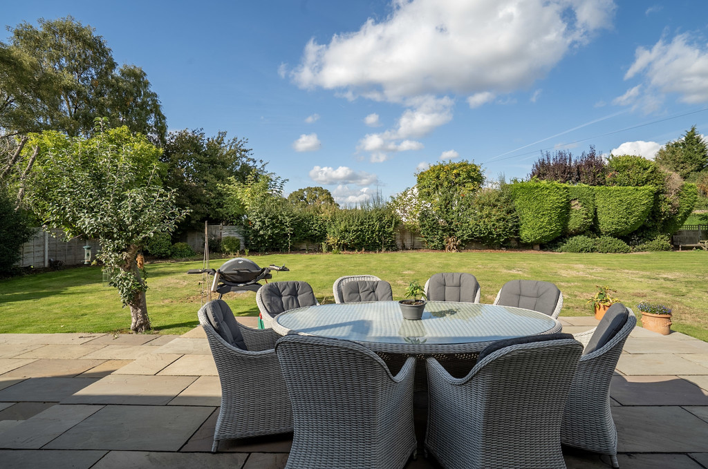 THE GARDENS The whole plot extends to half an acre (est) with the property sitting centrally. The gardens are predominantly lawned with border areas and there is the benefit of access down the side of the property to a gateway for the rear garden. There is a large patio to the rear of the property excellent for summer entertaining.