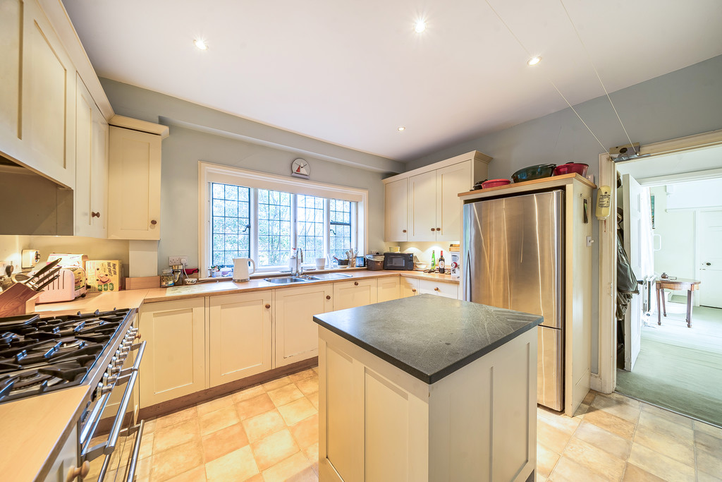 KITCHEN Fitted with a range of wall and base units with work surfaces over, incorporating a Range cooker with extractor hood, central island, integrated dishwasher and space for an American-style fridge freezer. The layout offers clear opportunity for enlargement or open-plan reconfiguration, subject to design preference.