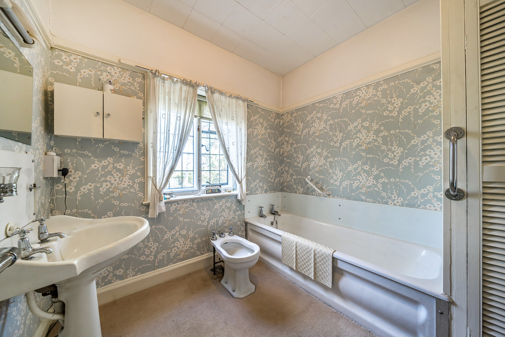 BATHROOMS AND CLOAKROOM Two family bathrooms and a separate cloakroom serve this floor, offering clear scope for luxury reconfiguration into contemporary bath or shower suites.